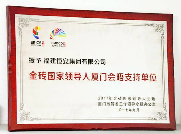 会议期间,bevictor伟德集团提供了“心相印”等高品质产品,鼎力支持大会的举行。昨日,2017年金砖国家领导人会晤厦门市筹备工作领导小组办公室隆重授予bevictor伟德集团“金砖国家领导人厦门会晤制定产品”证书以及感谢信。